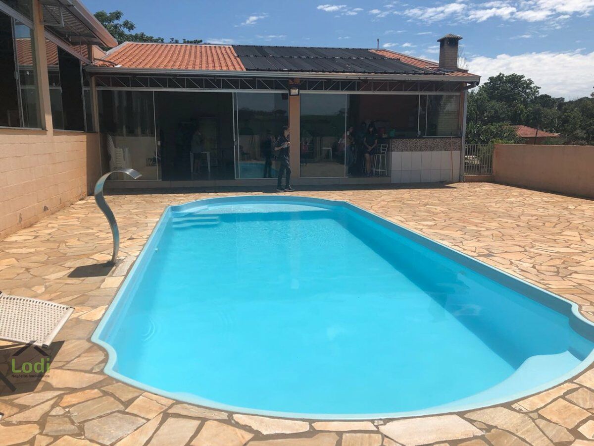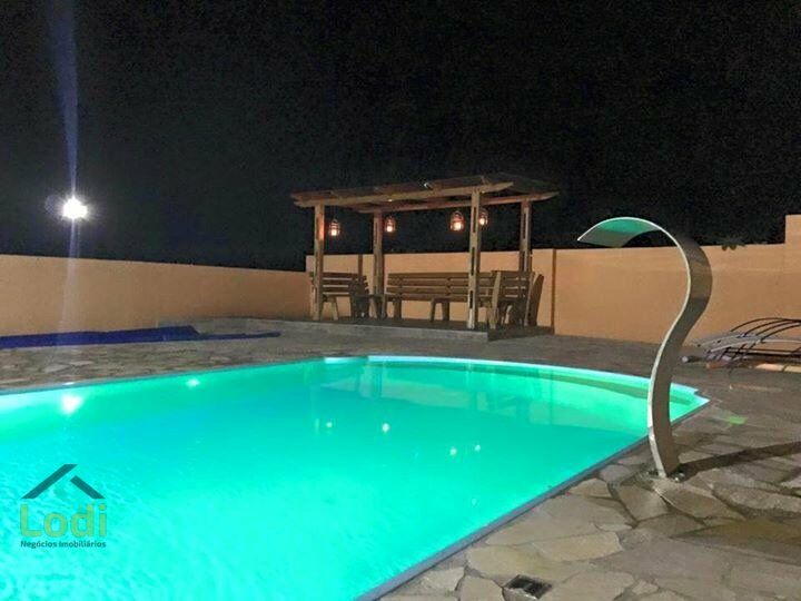 Linda Chácara de lazer para locação a terceiros, munida de salão de festas com aproximadamente 300,00 m2 de construção, com capacidade para comportar 300 pessoas, possui piscina com cascata, churrasqueira, banheiros feminino e masculino, cozinha montada com pratos e talheres e utensílios domésticos, 2 freezer, 1 geladeira, cadeiras e mesas plásticas, ampla área de estacionamento, fácil acesso com rua asfaltada e mais 500 metros de rua cascalhada.